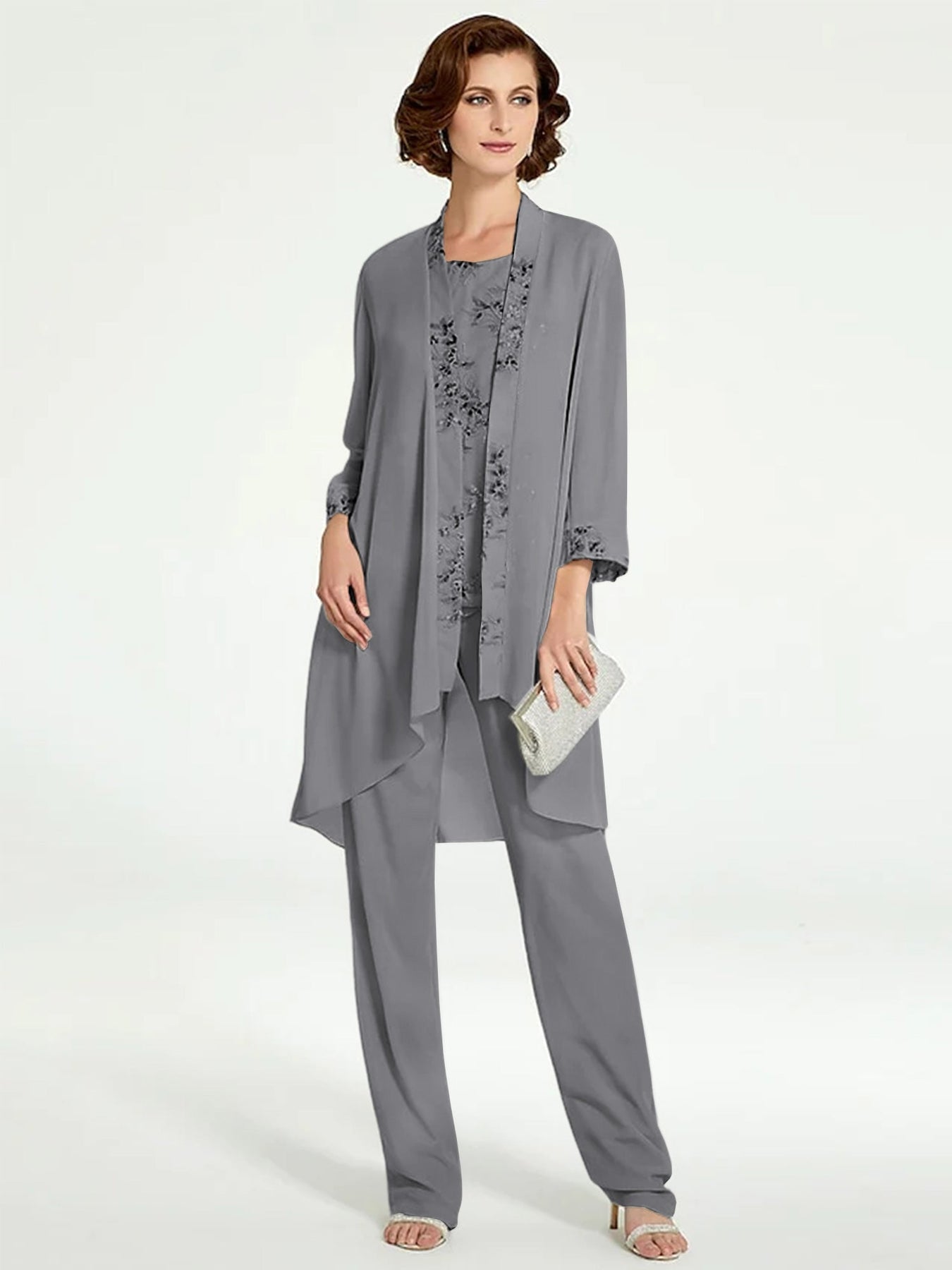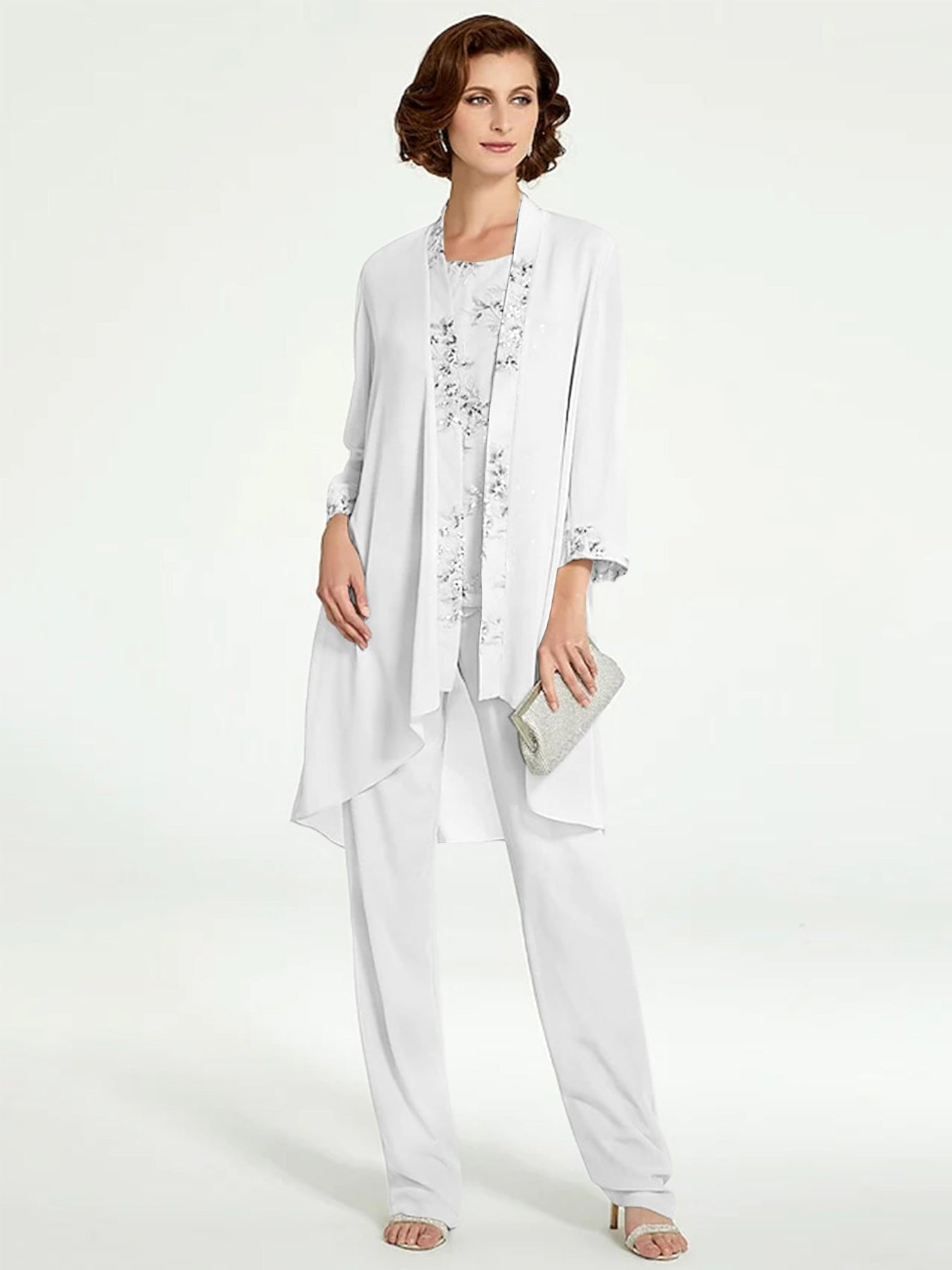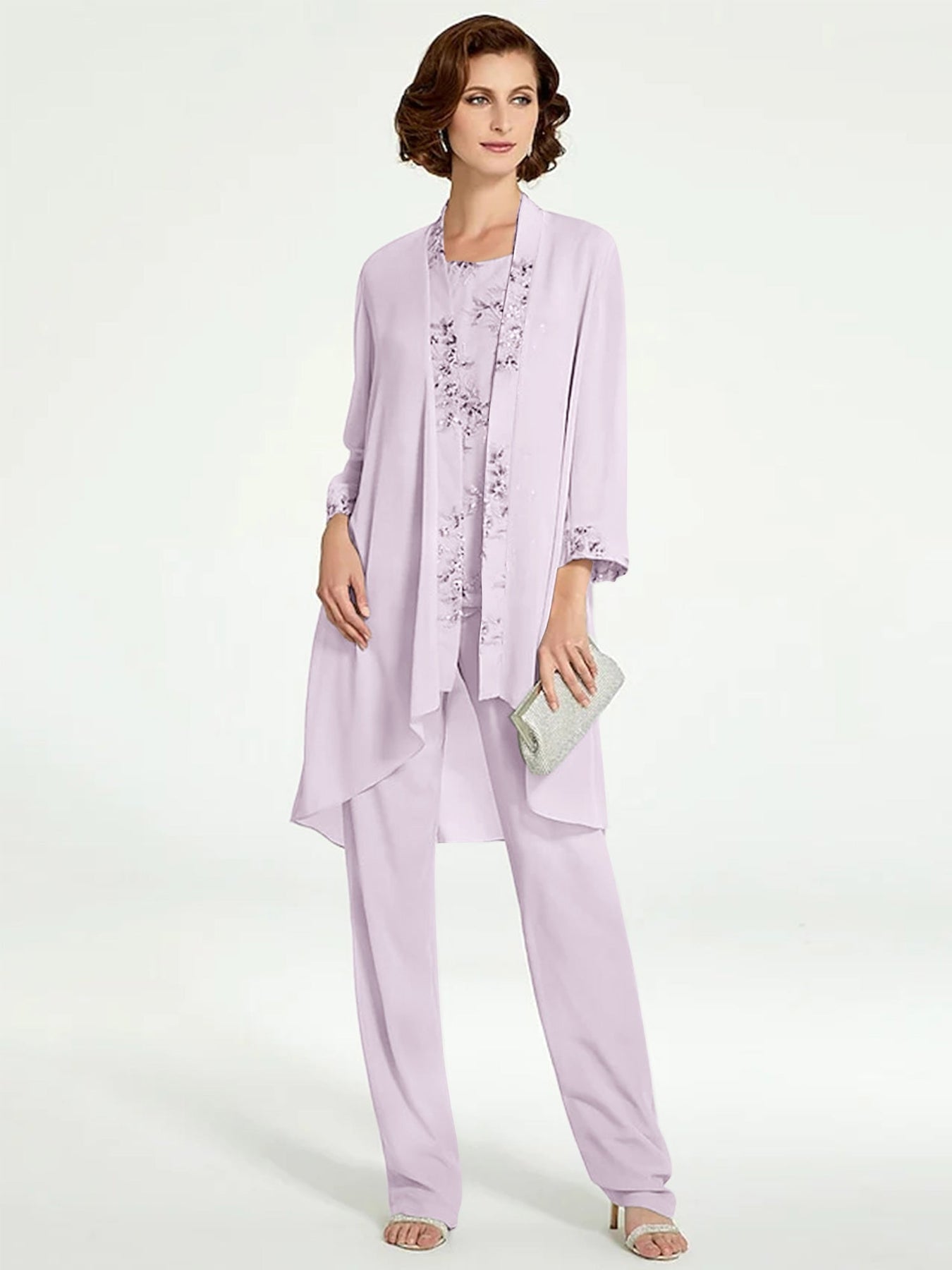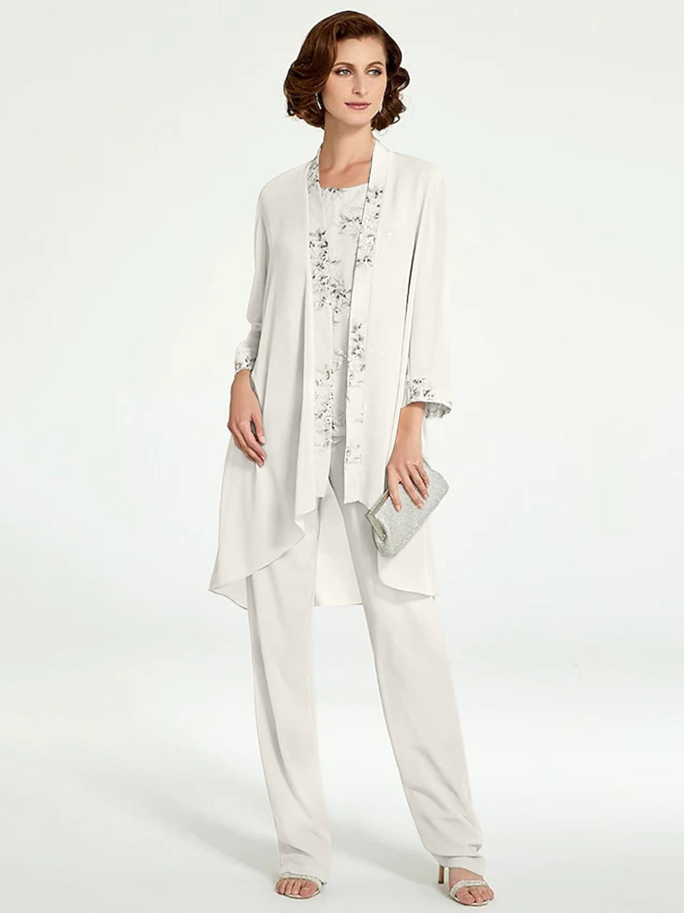 Chiffon Round Neck Floor-Length Mother of the Bride Pantsuits with Jacket