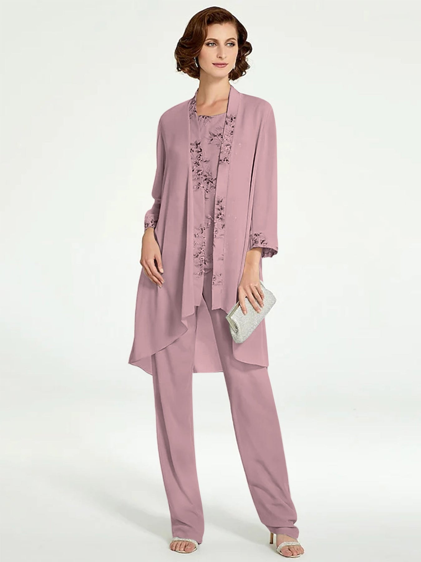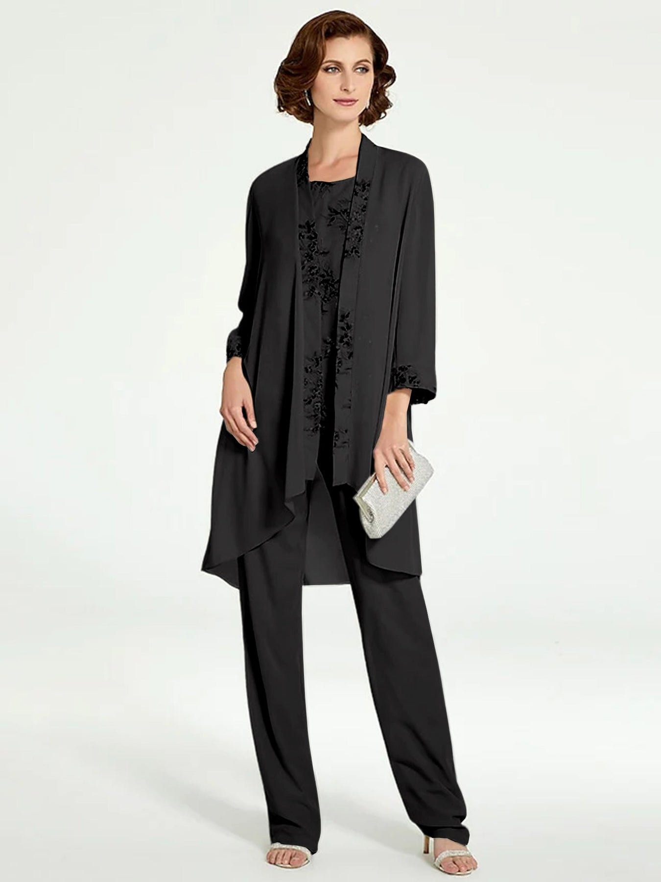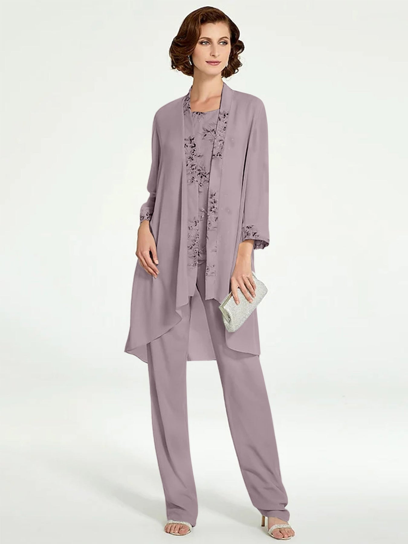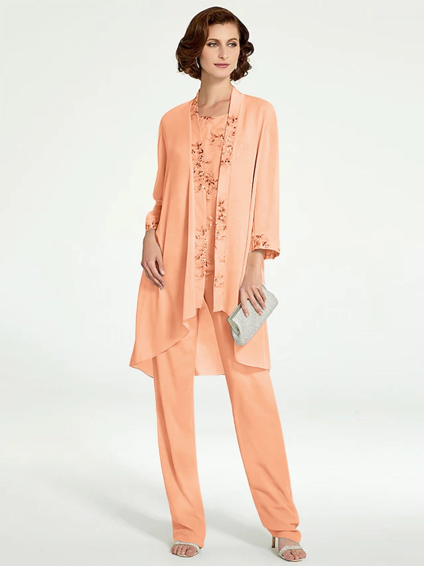 Chiffon Round Neck Floor-Length Mother of the Bride Pantsuits with Jacket